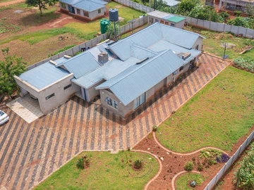 Double lock-up garage. Borehole, 5 kVA solar system, durawall and gated. On cession