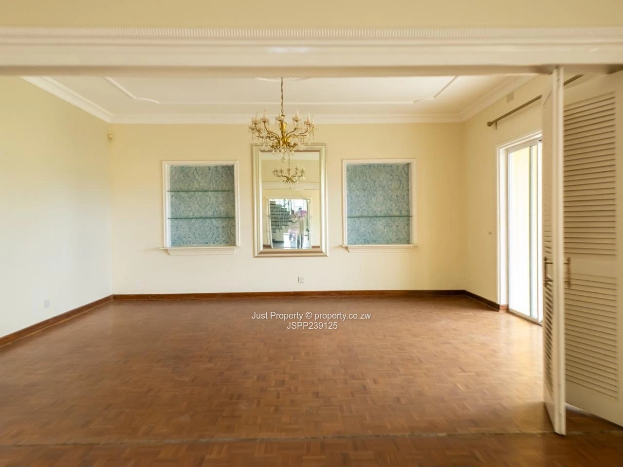 Outdoors, manicured lawns, established trees and a full-size tennis court provide leisure options for family life. Practical assets include a borehole, visible water tanks and solar panels that enhance self-sufficiency. Secure walled boundaries and a private, quiet street location in Harare North make this a rare, high-potential property for an expansive family home or executive residence. Contact us to schedule a private viewing.