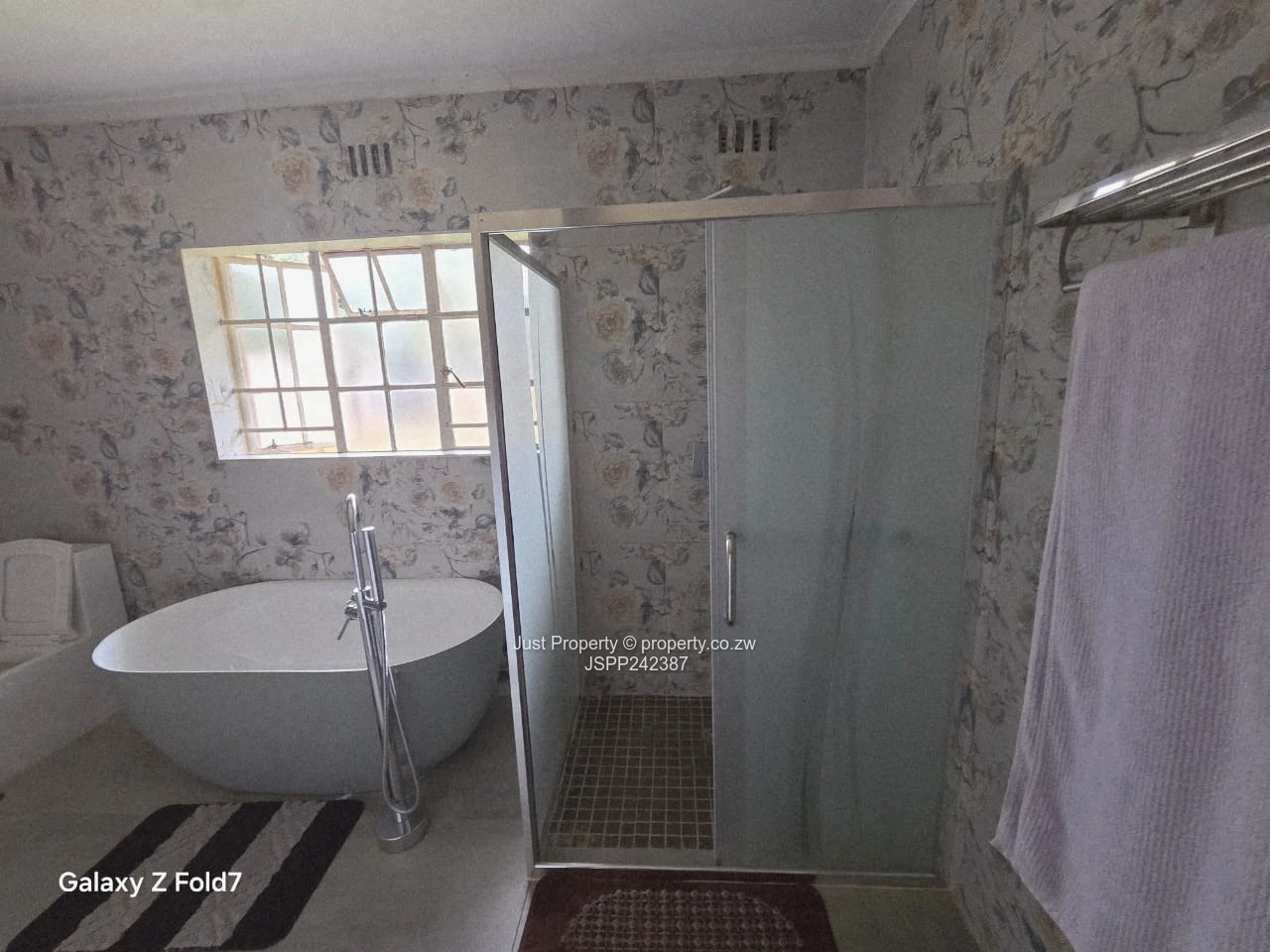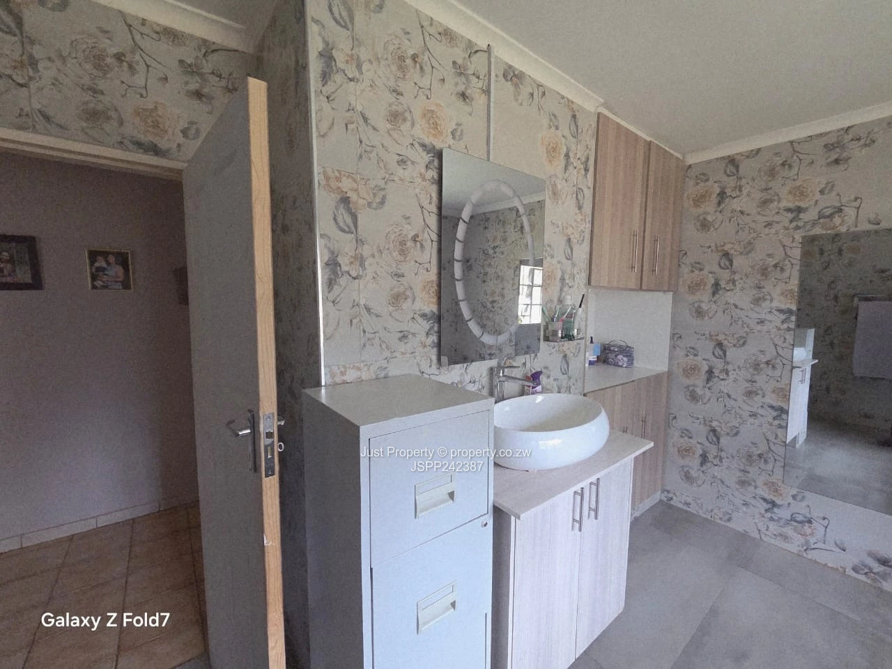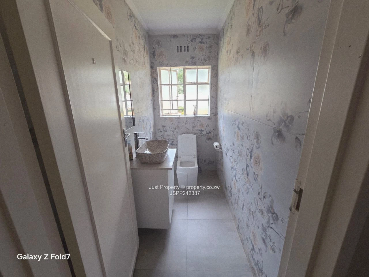 Immaculate family home in sought-after Borrowdale, Harare North — a rare 4,000 m² stand with a spacious 600 m² residence offering excellent family living and entertaining. The house features five comfortable bedrooms and three bathrooms. As seen in the photos, bright tiled bedrooms benefit from large windows, built-in wardrobes and soft neutral finishes that flood rooms with natural light. The guest bathroom presents contemporary fittings, a vanity basin and tasteful patterned wall finish for a fresh look.