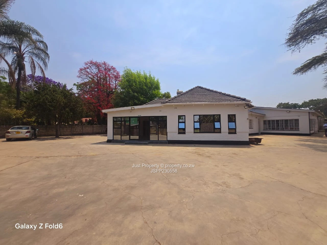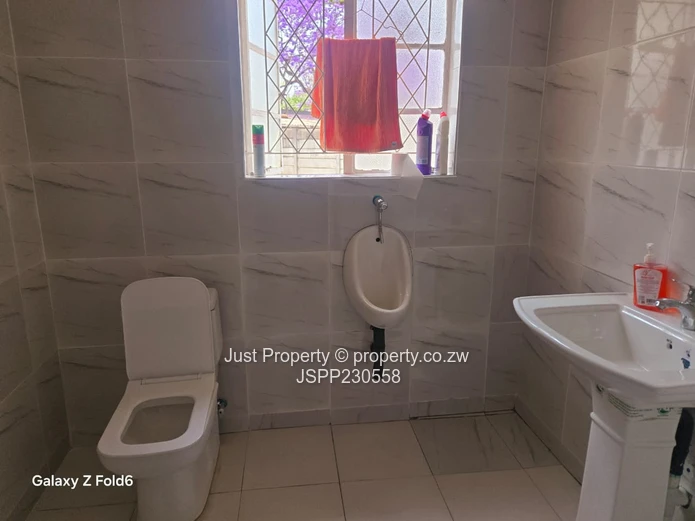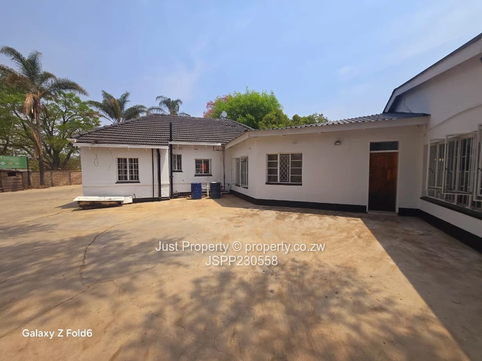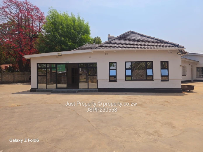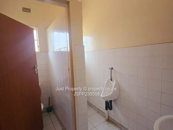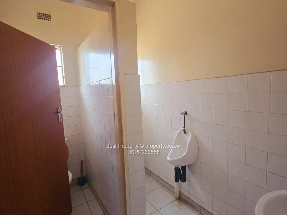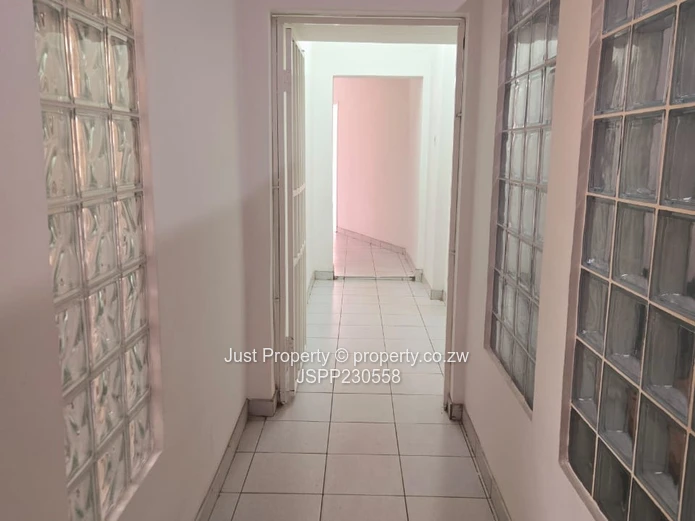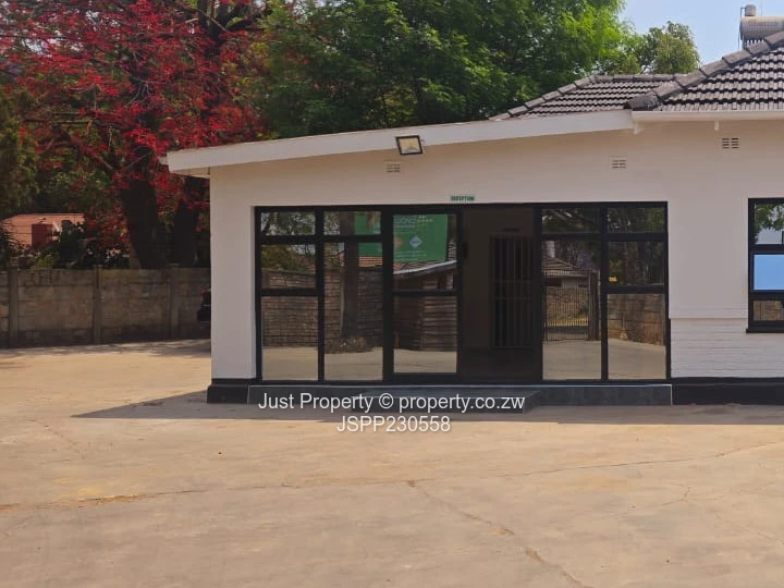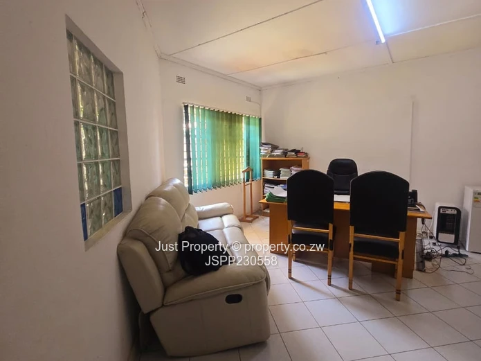 Prime Eastlea commercial opportunity — well-presented single-storey office on a generous 1,190 m² stand with 300 m² of usable building space. The property welcomes clients with a glass-fronted reception and wide paved forecourt with ample parking (photos show the clear, secure courtyard and easy vehicle access). Interiors are bright and practical: tiled floors, glass-block feature windows and a central corridor leading to several private offices and an open-plan working area currently set up with desks and shelving. A neat fitted kitchen and staff washroom facilities (newly tiled bathrooms with urinal and WC visible) support daily operations, while municipal water ensures reliable supply. The layout includes a private consulting/manager’s office, meeting space and storage rooms — ideal for professional services, clinics, small corporate HQ or training centres. Well-maintained façade, secure windows and clear signage potential make this a turnkey investment in Harare East. Arrange a viewing today to appreciate the space and location. Contact for full details and price.