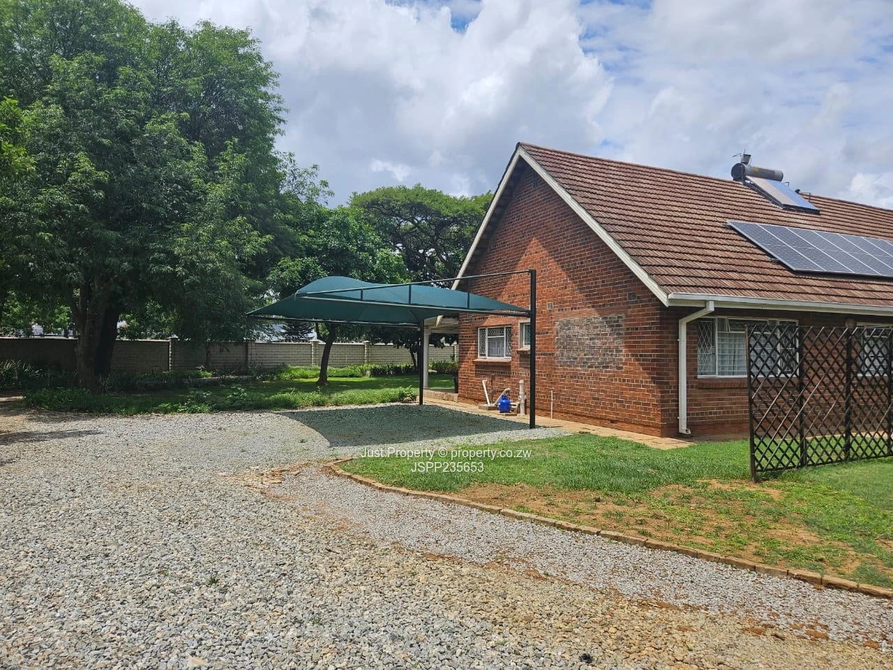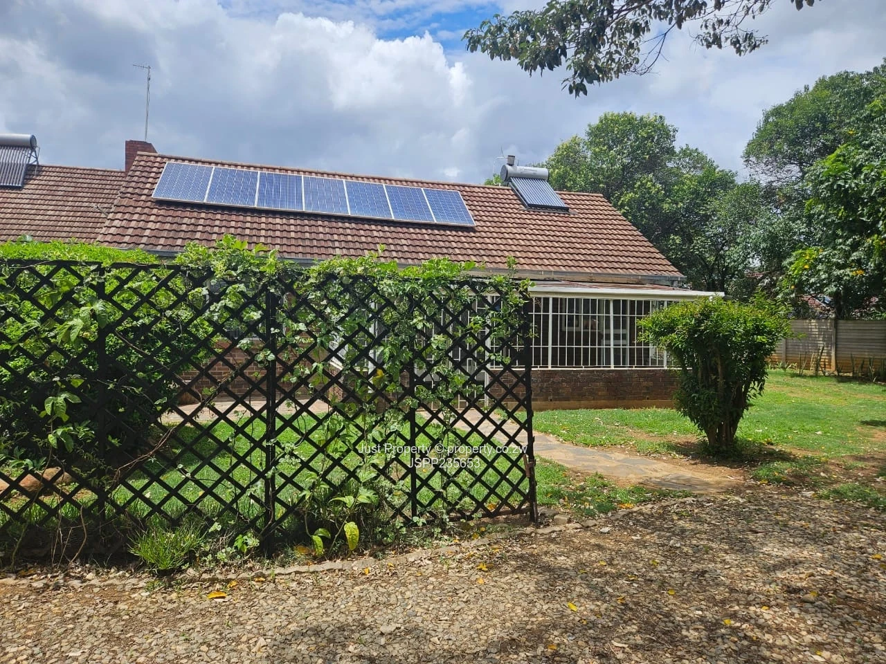 Complex is walled with razor wire and electric gate. Gardens have irrigation throughout property. Borehole is seasonal and municipal water is available. 2 bedroom Staff quarters with 3 KVA solar, own water tank and solar geyser.